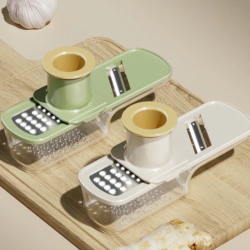 THREE-IN-ONE VERSATILITY: Replace three separate tools—this all-in-one slicer, shredder, and masher lets you prep garlic, veggies, and ginger quickly with professional results and minimal clutter.