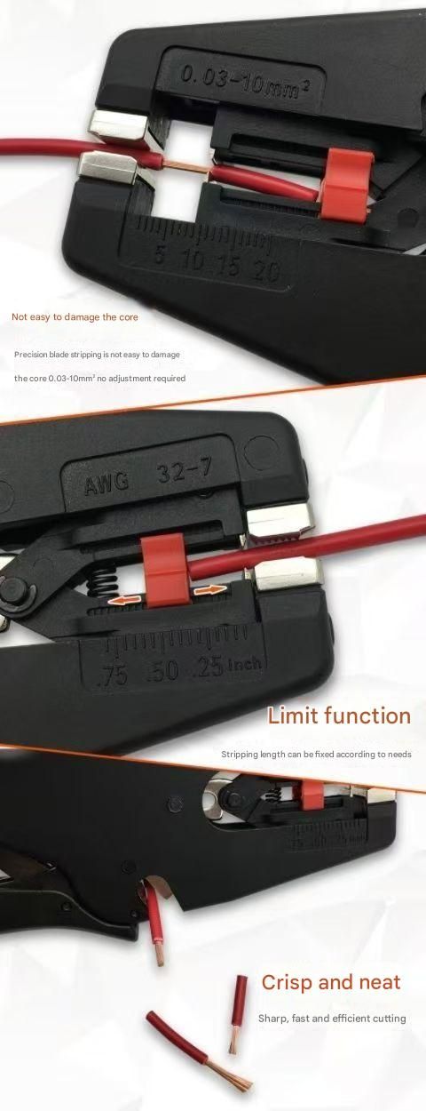 🔥 Precision blade + limit design, the wire core is completely unharmed. The special blade is like a "gentle scalpel", only stripping the insulation layer without damaging the wire core; there is also a limit function, just twist it to determine the length of stripping. The precision is so good that even novices can strip with a professional look.