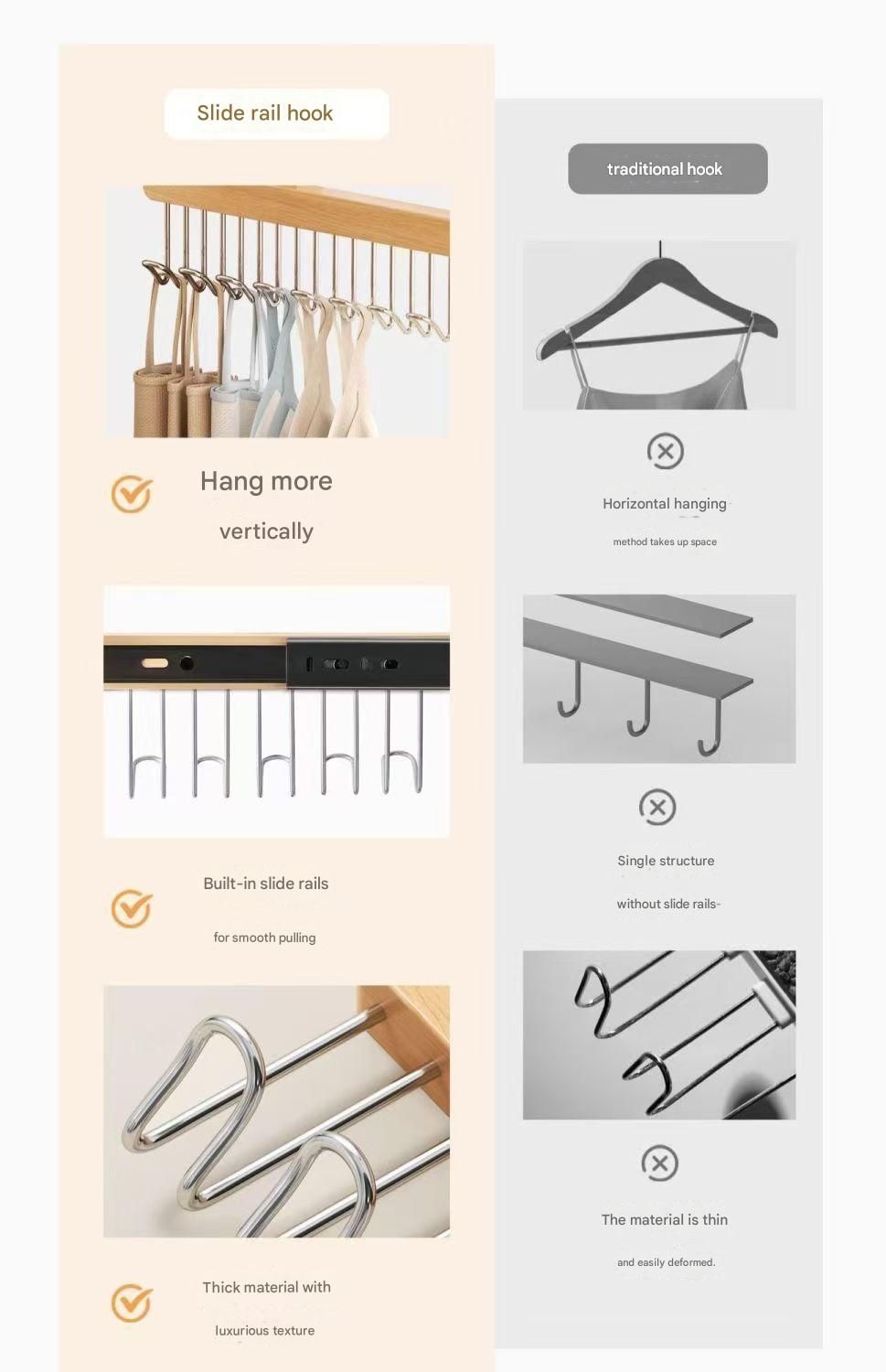 With this pull-out sliding clothes rack, you will find that every space in your home has become more organized. Cooking in the kitchen is more enjoyable, going out the door is more relaxed, and choosing clothes in the wardrobe is easier. The happiness of life is quietly improved.