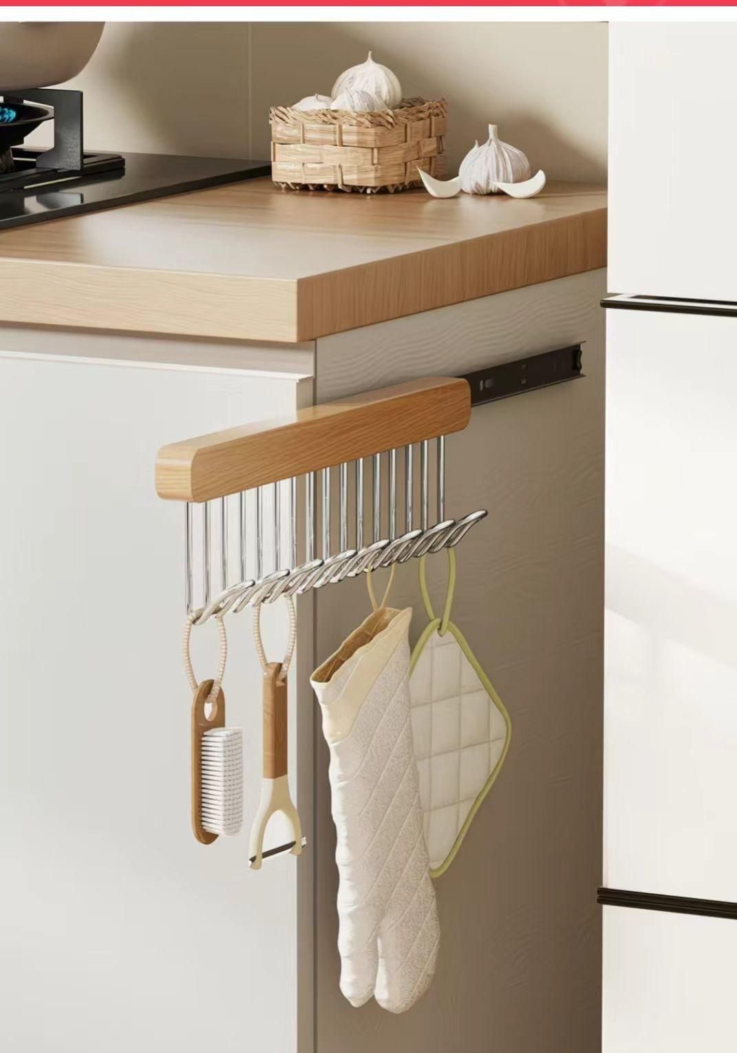 Is your kitchen messy? This hanger easily hangs spatulas, gloves, and other utensils. Deep cabinets are a great helper for organization, eliminating clutter and making cooking easier.