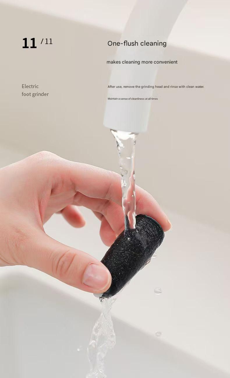 The grinding head can be removed and rinsed with clean water to make it as clean as new. No more worrying about dead skin residue and bacterial growth, zero-effort cleaning!