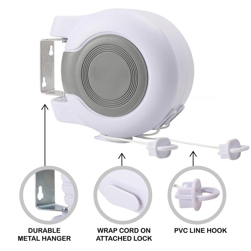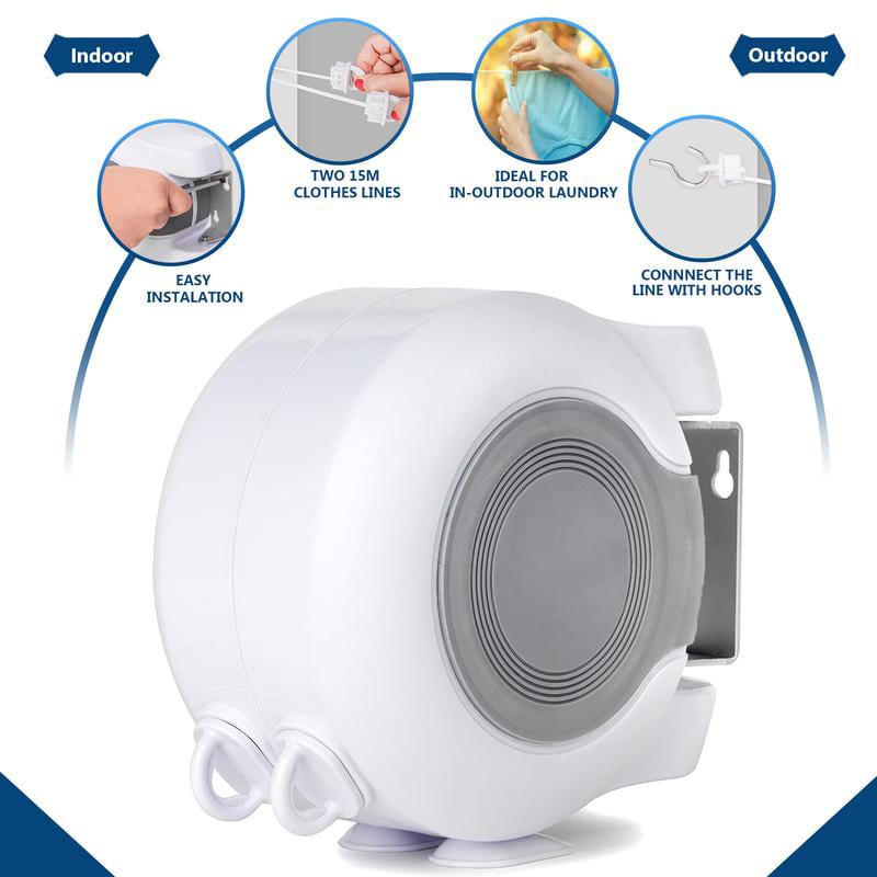 Dryer Space - Extendable up to 98ft (15m*2)Retractable Hanging Lines give you enough space to dry all your clothing at once for outdoors or indoors, leaving your washing with a natural fresh air fragrance