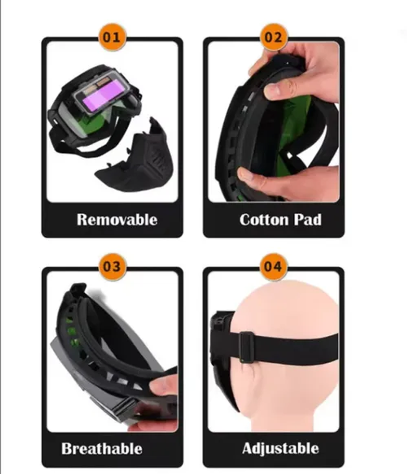 NATYCHMIASTOWA REGULACJA ŚWIATŁA – Płynne przejście dla ochrony oczu: Chroń swoje oczy w zaledwie 0,1 sekundy. Ten hełm automatycznie przyciemnia się pod wpływem światła spawalniczego, zmniejszając zmęczenie oczu i chroniąc wzrok — bez potrzeby użycia baterii. Zasilany energią słoneczną, zawsze gotowy do pracy, gdy tego potrzebujesz.