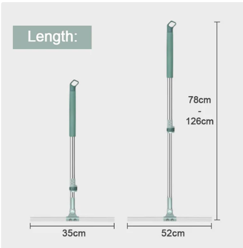- length:floor squeegee is 35 cm(12.2inch)long, assembly length of the wiper mop is from about 78-126cm(30.7-49.6inches)