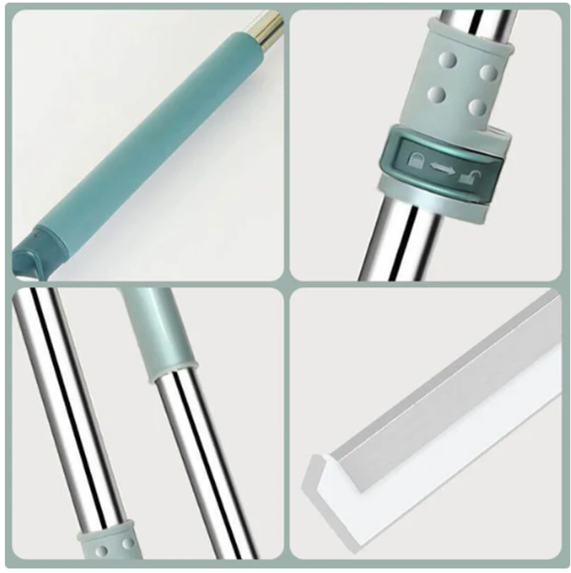 The sweeping broom has a newly engineered 180˚ rotating head for easy cleaning under the couch, bed, cleaning the desktop, sweeping, cleaning windows, sweeping water, wiping water, pet hair removal, pet fur, table, or other furniture. easily clean up waterlogging in the bathroom, greasy oil in the kitchen and leave no waterlogging. Clean all hard-to-reach areas while protecting your wrist from the pain.