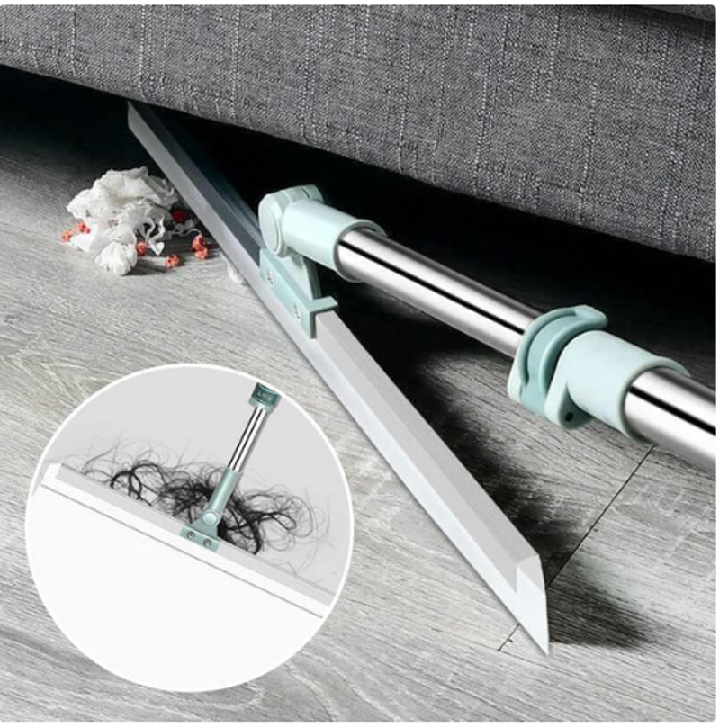 Use the upgraded magic squeegee broom works perfectly for carpet, rug and floor cleaning, living room, kitchen, hard floor, tiles, swimming pool, garage, bathroom, can also be used as a window squeegee cleaning spray glass wiper. This floor squeegee is 35/52cm (12.2/20inch)long, It effectively sweeps out strands of hair, dust, sand, pieces of broken glass, any liquid, and more. The silicone head adheres to the floor and sweeps out everything without missing anything.