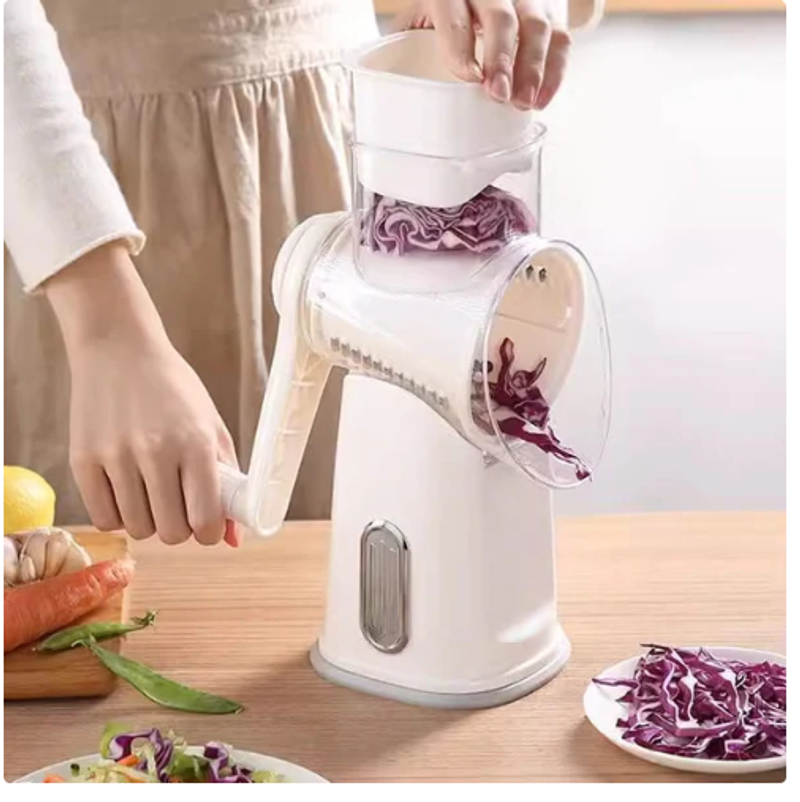 Package Includes:1* White Rotary Vegetable Grater with 10 Blades, 1*Blade Organizer
