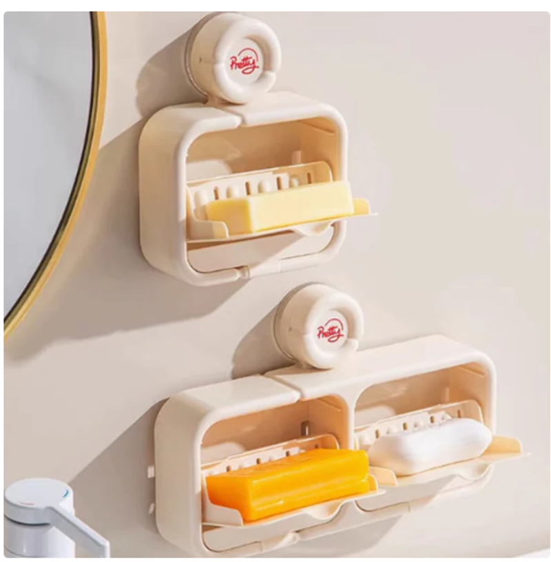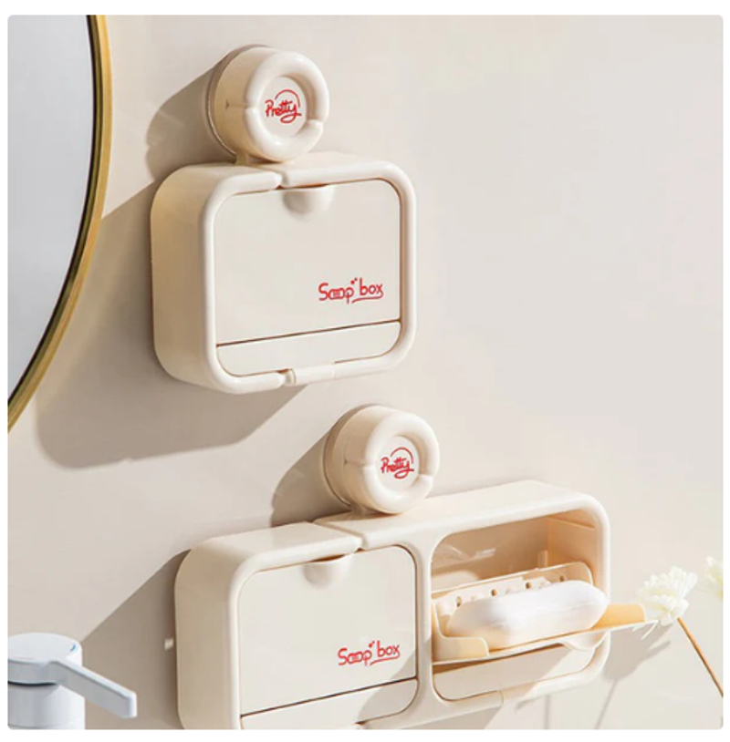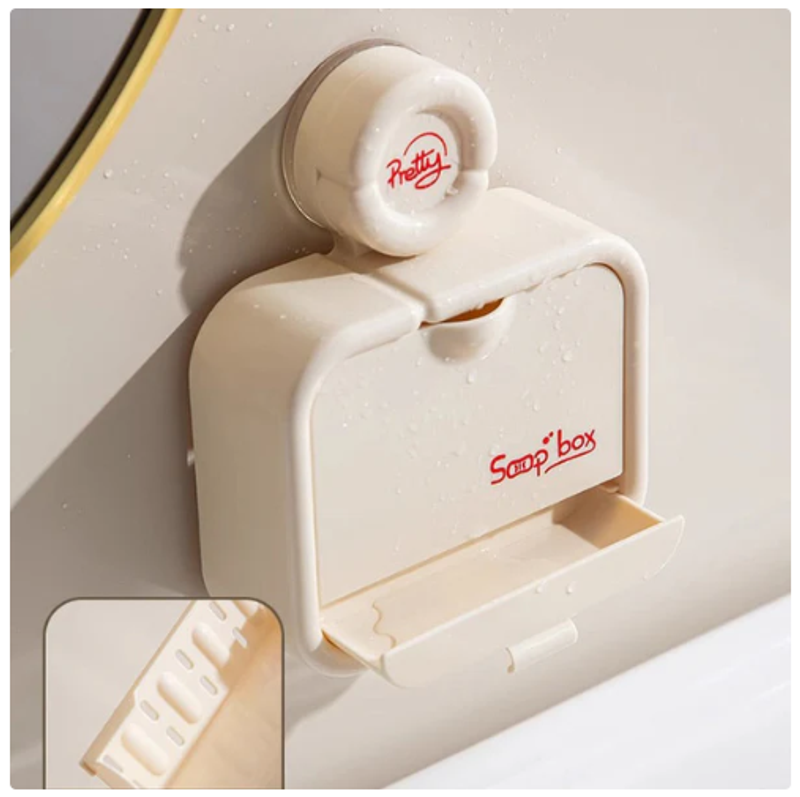 Package Included: 1 * Wall-Mounted Soap Dish with Suction Cup & Flip-Top Lid