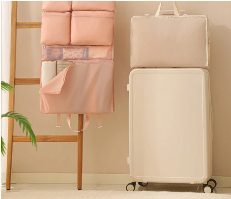 WIDE STRAP HANDLE DESIGN – This travel bag features a handle design that allows it to be hung up, saving floor space and keeping your area neat. The wide strap ensures that carrying the bag is comfortable, preventing chafing and fatigue in your hands. It helps lighten the load and reduces the strain while traveling.