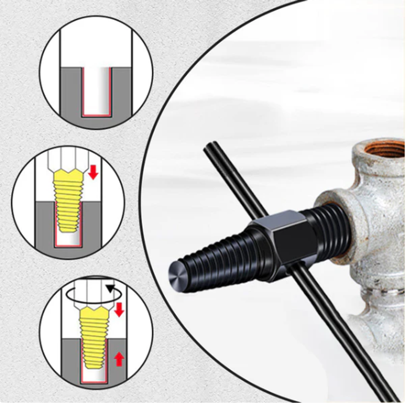 FACILE À UTILISER - Choisissez l'outil correspondant au diamètre intérieur du tuyau cassé, insérez l'outil d'extraction et tournez-le dans le sens inverse des aiguilles d'une montre à l'aide d'une tige ou d'une clé pour retirer sans effort le fil cassé.
