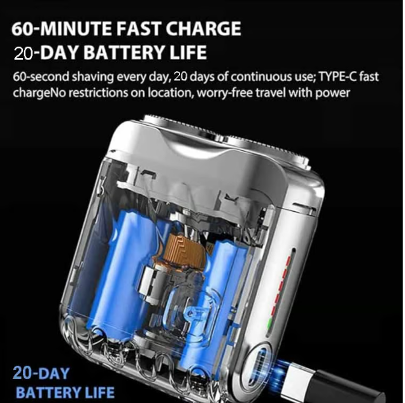 Mini Shaver. Small Size, you can easily put it into the pocket to pick it up. plastic body. It is suitable for travel, business travel, office, car, travel, camping, etc.
