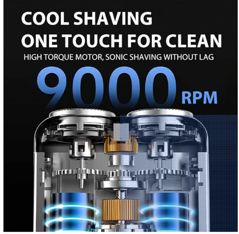 High-speed Quiet Motor: Painless, low-noise, rotarys close shaving is achieved by a powerful high-speed motor, which is strong than ordinary electric shavers. Not only efficient, but quiet so you can enjoy every shaving moments.