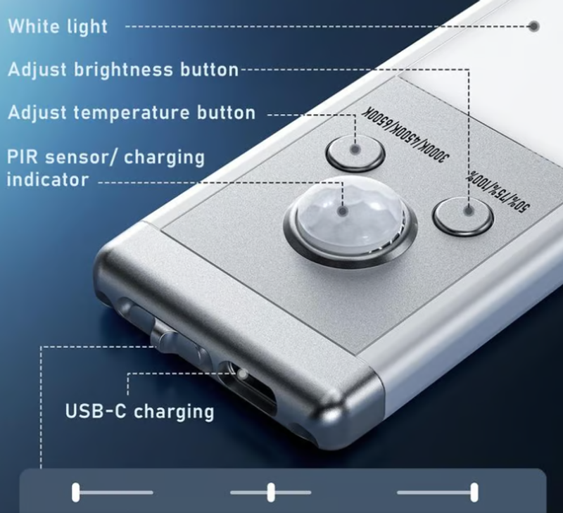 Our smart motion sensor under cabinet lights will instantly brighten your home. No need to lift a finger – light moves with you, offering safety and peace of mind!