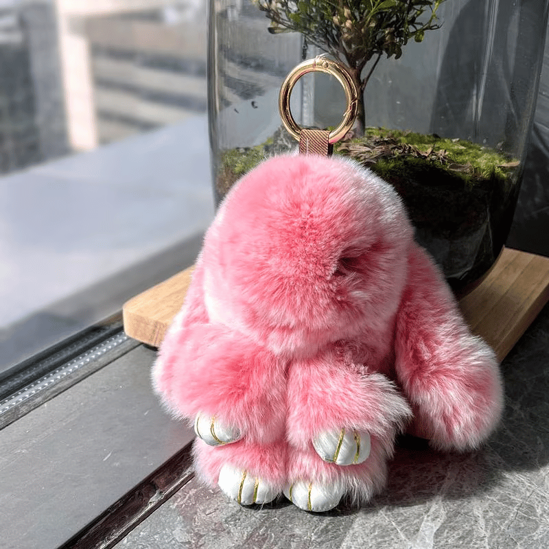 • High-Quality Faux Fur: The keychain is crafted from premium faux fur, ensuring durability and softness that mimics real rabbit fur without harming animals.