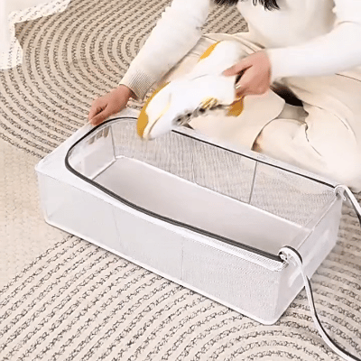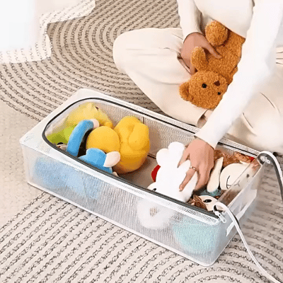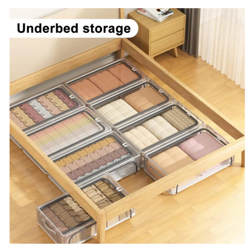 Just lift the smooth and transparent lid, then stand up the stand and you're done. This lightweight design can be placed at will under the bed or in a corner without taking up too much valuable space.
