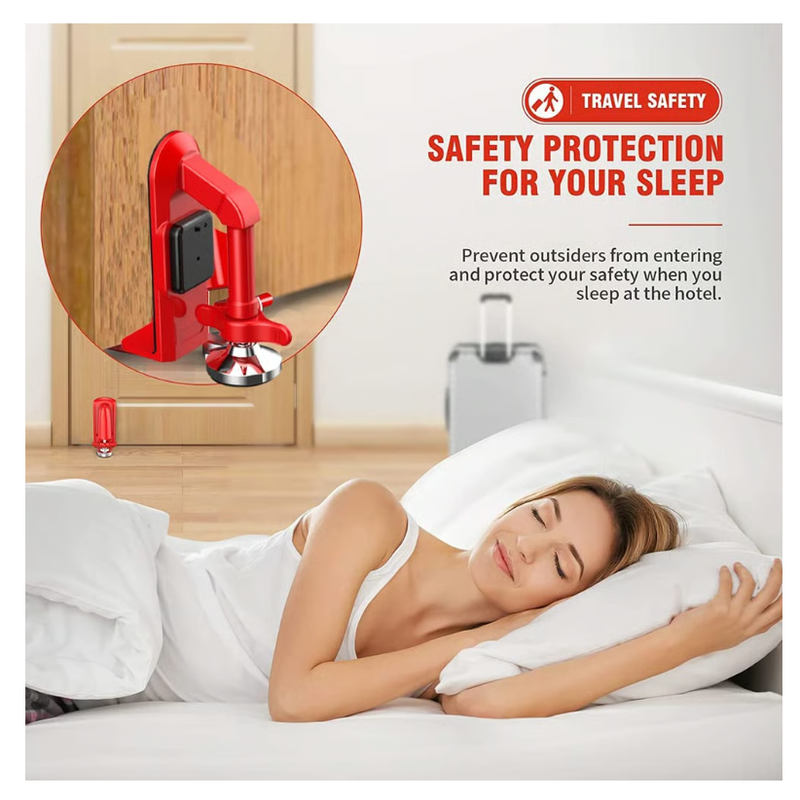 🚪【High-sensitivity alarm】This Portable door jammer is an industrial-strength door security device, that prevents unwanted entering forcibly, High-sensitivity induction, will alarm as soon as it vibrates, guarding your sweet sleep. Also suitable for public buildings, schools, and offices for all you.