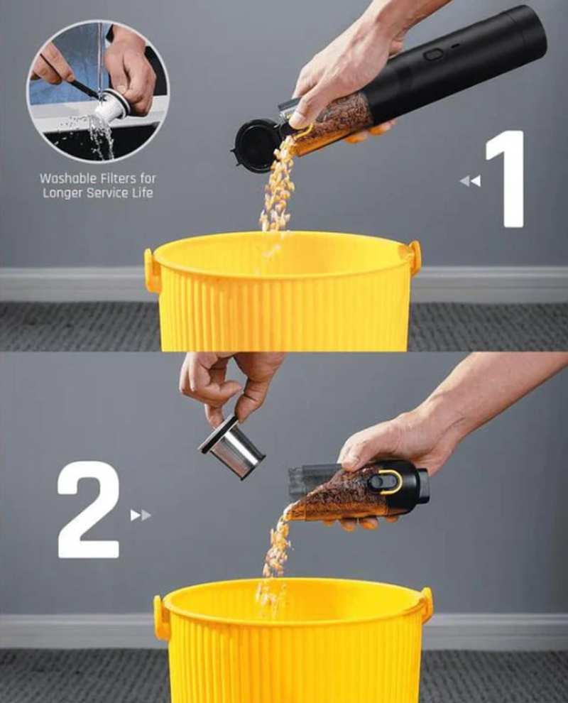 Note: Please fully charge the device before use. 𝐖𝐡𝐞𝐧 𝐢𝐭 𝐢𝐬 𝐨𝐧 𝐥𝐨𝐰 𝐩𝐨𝐰𝐫, 𝐭𝐡𝐥𝐜𝐭𝐢𝐨𝐧𝐧𝐭 The filter is a washable and replaceable accessory that needs to be cleaned at the time, otherwise it will affect the 𝐬𝐮𝐜𝐭𝐢𝐨𝐧 𝐨𝐟 𝐭𝐡𝐞 𝐦𝐧𝐡𝐢𝐢𝐧