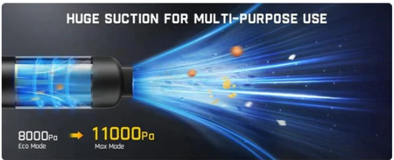 Strong Suction Power - The high-speed brushless motor provides 30AW/12kPa strong suction power to easily pick up stubborn sand, dust and debris. Two-speed suction setting, low speed can be used for 𝟑𝟎 𝐦𝐢𝐧𝐮𝐭𝐞𝐬, high speed can be used for 𝟭𝟮 𝐦𝐢𝐧𝐮𝐭𝐞𝐬