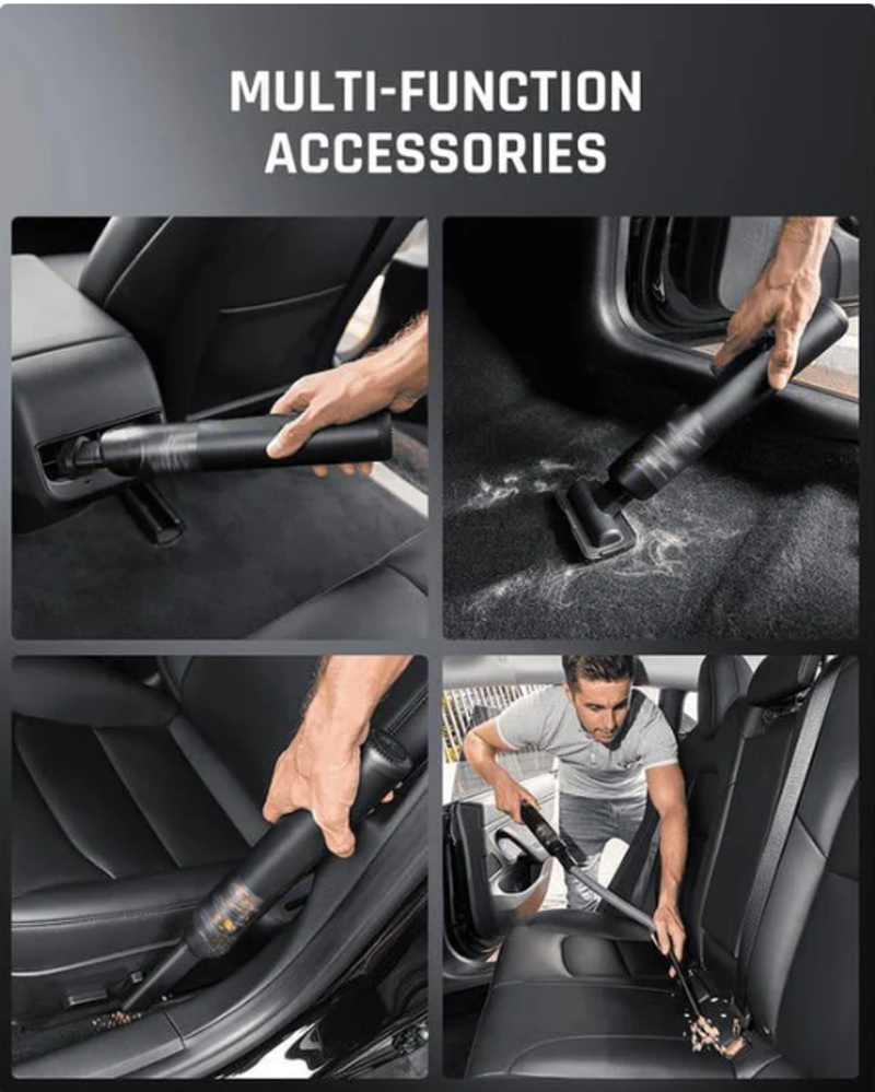 Ultra-lightweight cordless - Weighing only 540 grams, as heavy as a water bottle, its cordless design allows you to easily clean sand, dust and debris in every corner of the car with one hand. Compact and portable, the attached storage bag is convenient for storage in the car.