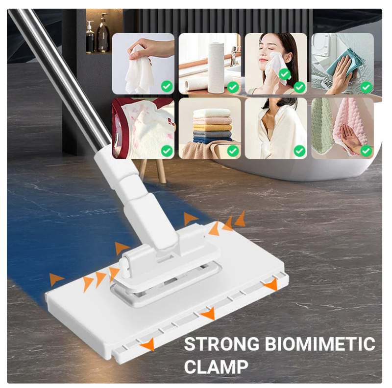 STRONG BIOMIMETIC CLAMP: The clip securely holds various cleaning materials like face towels, paper towels, or cloths. Easily attach and release with a single press—no dirty hands.