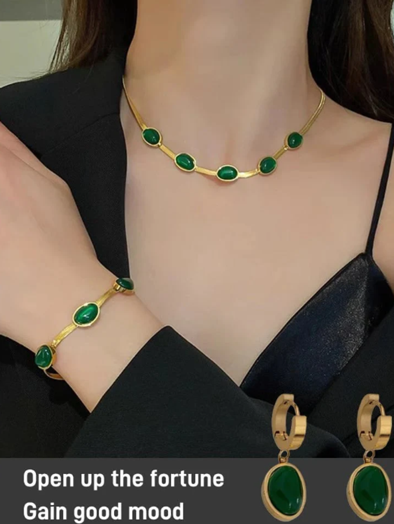 💥 Three piece set 50% OFF 💥 Ultimate Elegant - Jade Bracelet, Earrings & Necklace Set