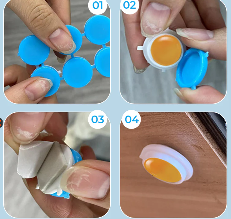 SAFE PLACEMENT, MINIMAL ODOR: Compact and odor-free, these stickers are suitable for use near food storage areas (with caution), under sinks, behind appliances, and in hard-to-reach cracks.