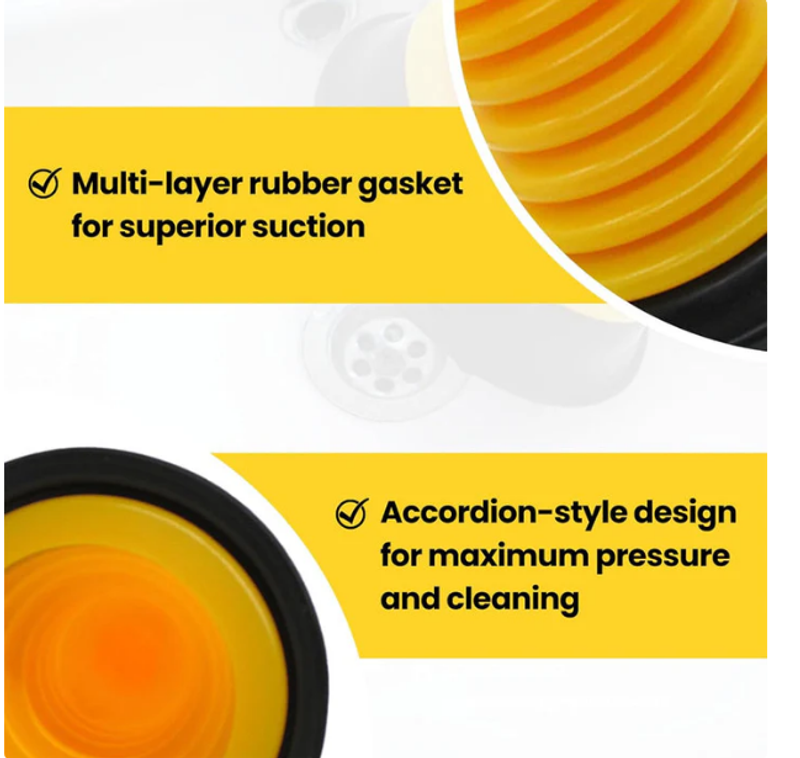 INNOVATIVE ACCORDION DESIGN: The accordion-style structure maximizes suction power, quickly removing clogs from sinks, bathtubs, and showers. Its durable construction ensures it handles heavy-duty tasks without compromising on quality or efficiency.