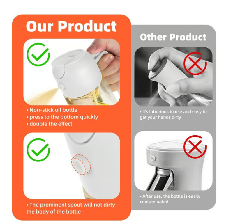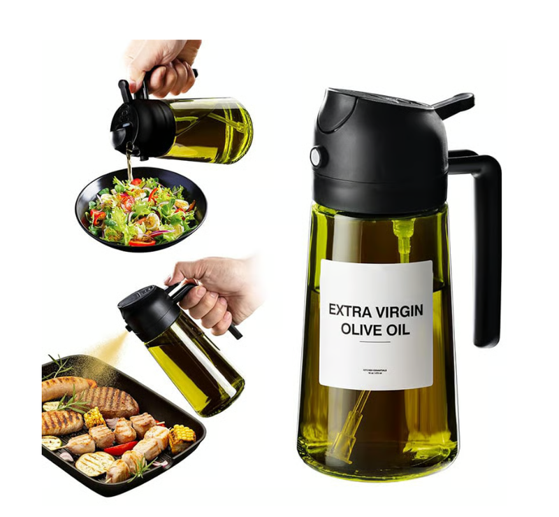 Dual Dispensing Convenience: This oil bottles for kitchen offers both pouring and spraying capabilities, allowing you to switch between the two with ease. It's a space-efficient solution that keeps your kitchen clean and organized.