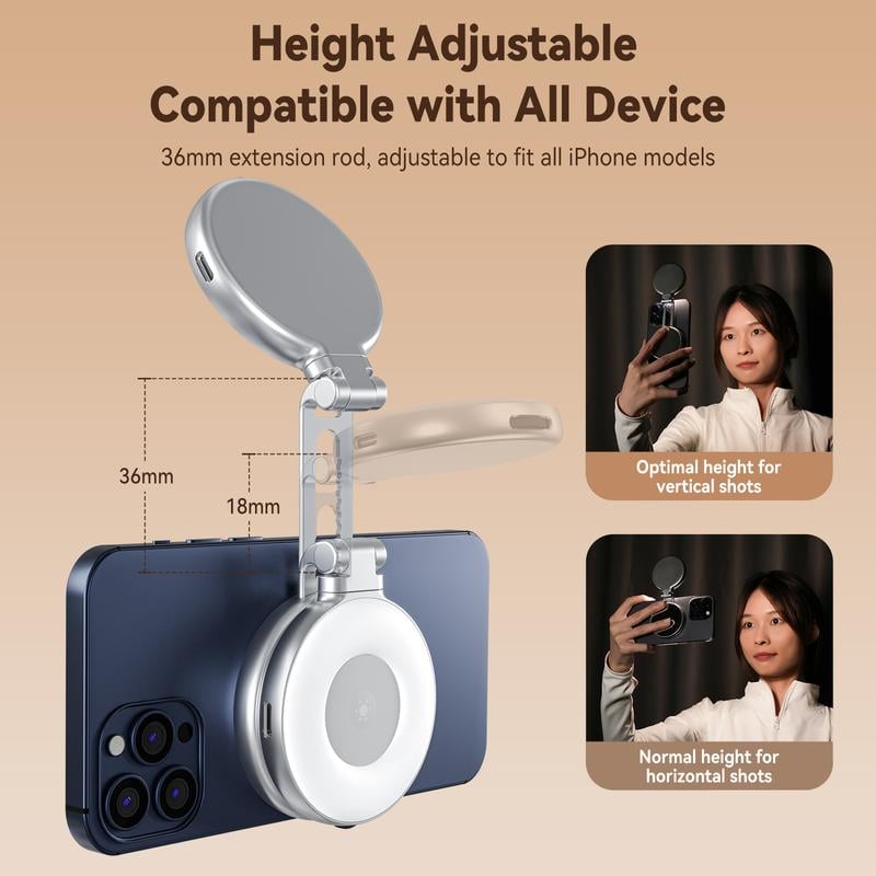 Upgrade Your Photography: Level up your photography with magnetic fill light, which works as a reliable partner for photos, selfies, video shooting, vlogging, and makeup sessions. Compatible with iPhone 16/15/14/13/12/11 series and other non-MagSafe phone devices. It's rechargeable, portable, and compact enough to fit in your pocket."