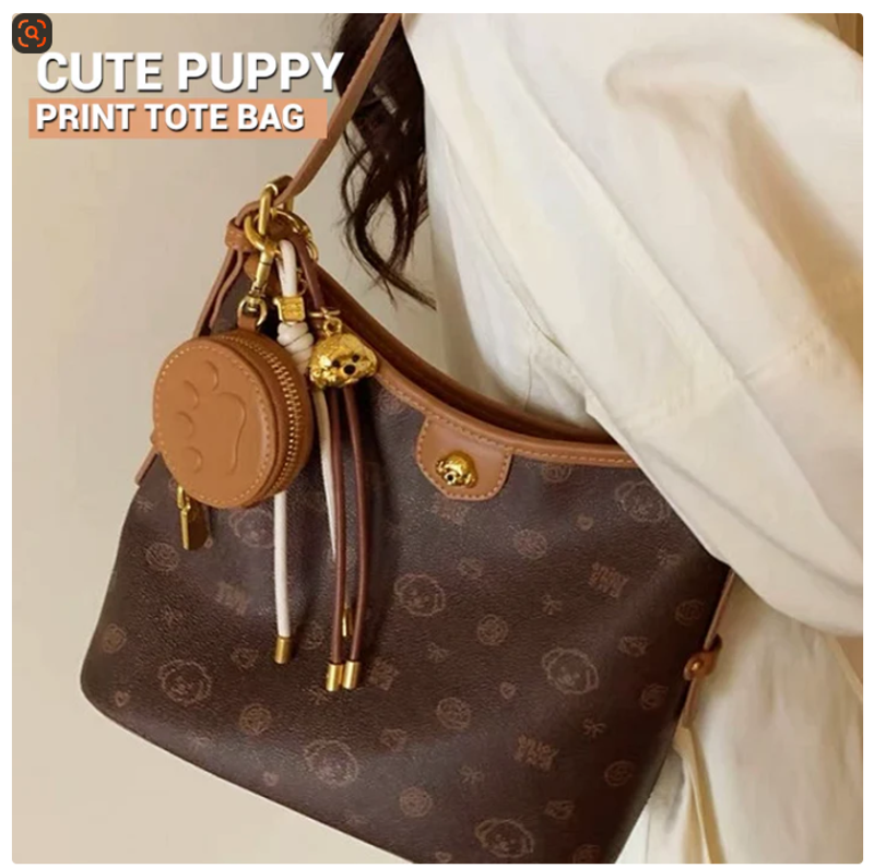 1×Cute Puppy Print Large Tote Bag