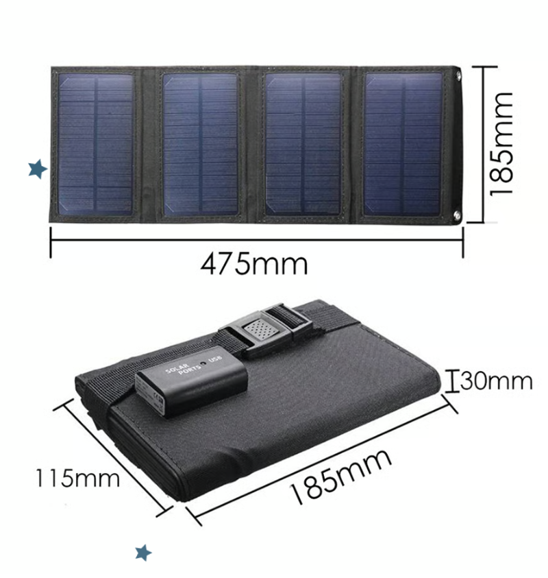 Designed for portability and convenience, weighing only 0.81lb, this solar panel is foldable and handy with a folded size of 7.4*7.5*1 inches. This slim solar charger is smaller and lighter than others and equally powerful. Light enough and don't add too much weight to your load.