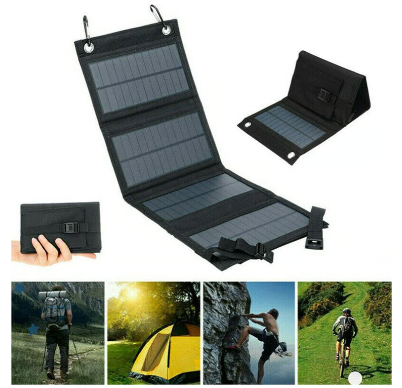 Inbuilt hooks and 2 extra carabiners make it easy to strap to your pack or tent, or just take with your hand 8W portable solar panel is very suitable for off-grid trips, RV traveling, camping, hiking, picnics, fishing, cycling, mountain climbing, and other outdoor activities, even unexpected power outages.