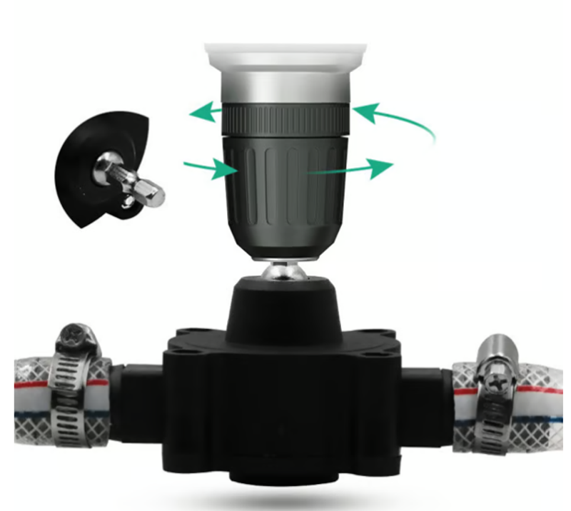 The Self-Priming Transfer Pump is a compact, self-priming and battery-free drill pump that you can use for personal and professional use. Just attach an electrill bit, and be amazed with its steady and fast flow rate of 20-30L per minute.