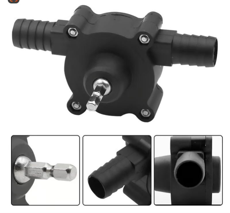 Self-Priming Transfer Pump is battery-free. All you need is to attach an electric drill to this pump, and you can transfer water, oil, and more! The drill pump’s hex shank is compatible with different kinds of drill bit chunks.