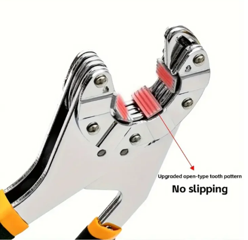 The 14-in-1 High-Carbon Steel Multitool Wrench is a versatile and heavy-duty manual tool designed to simplify a wide range of mechanical tasks. Whether you're working with pipes, bolts, or nuts, this wrench adapts effortlessly—saving time, reducing tool clutter, and improving efficiency. Its innovative self-adjusting jaw mechanism allows for a secure grip on various sizes of hexagonal fasteners and pipes with just a light squeeze. Crafted from high-carbon steel and finished with a polished, heat-treated surface, this tool is built to withstand demanding environments while providing long-lasting performance.