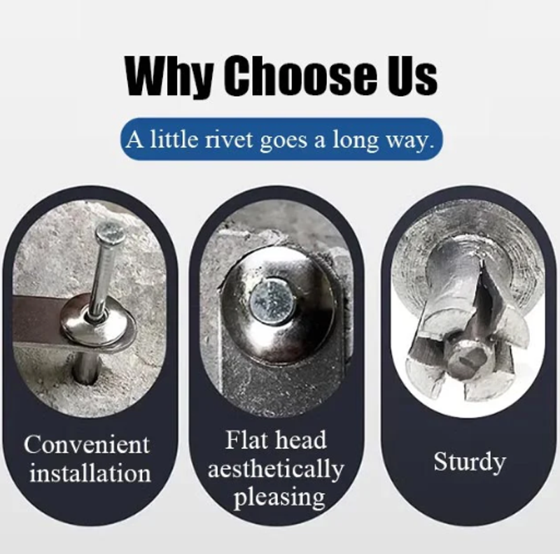 USER-FRIENDLY INSTALLATION: No specialized tools are required. Simply position the rivet and use a standard hammer or mallet to secure it in place. Experience hassle-free installation without compromising on strength.