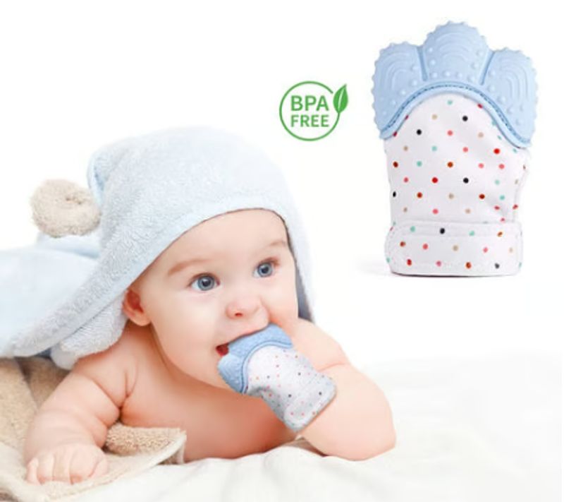 Certified BPA-free and Phthalate-free, this teething glove is made of food-grade silicone for parents concerned about the pain caused by teething.