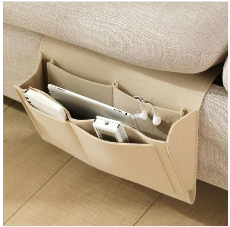 All Within Arms Reach. The bedside pocket can store all of your belongings together by your side while on bed,sofa or desk which have a safe and standard place, and no more lost things. More strong and durable, hold heavier things and will not be deformed