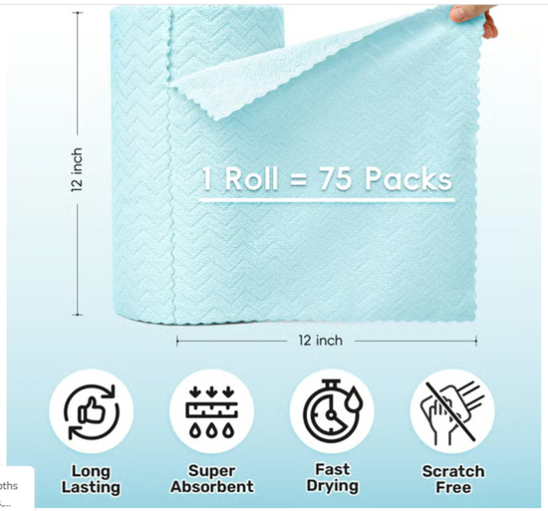 🔶 Ultra Absorbent – Each cloth can absorb up to 7x its weight in water, outperforming traditional paper towels for spills, drying dishes, or tackling everyday messes.