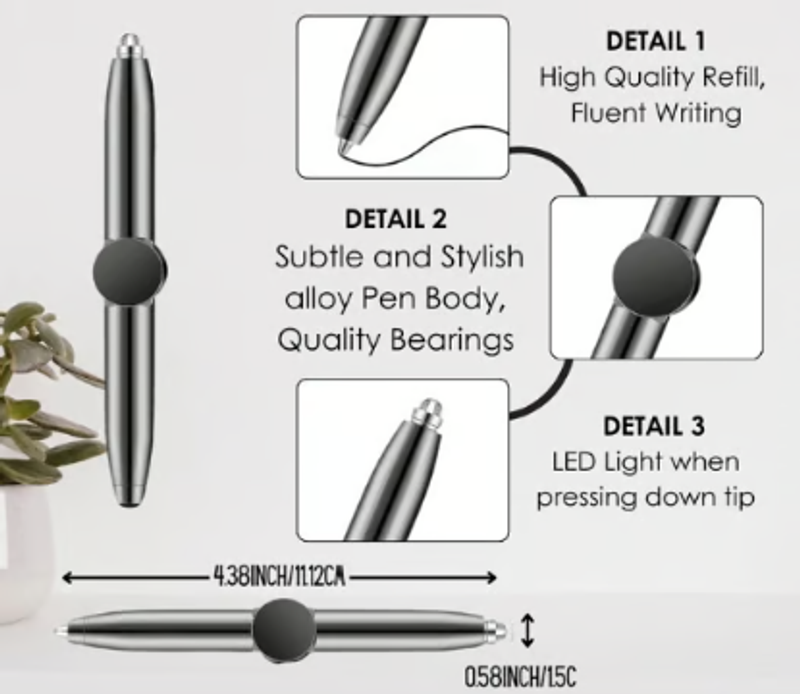 Verwenden Sie diesen Zappelstift, um sich zu entspannen und Stress abzubauen, wenn Sie Konzentrationsschwierigkeiten haben, sei es bei der Arbeit oder beim Lernen. Es dreht sich und hat ein Licht✨