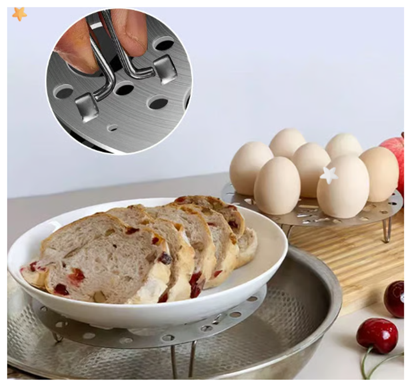 Elevate your culinary creations with our Silver Stainless Steel Steamer Rack! Crafted from premium stainless steel, this versatile rack is designed to enhance your cooking experience. Whether you're steaming vegetables, dumplings, or seafood, our steamer rack with stand offers superior durability and functionality. Its sleek silver finish adds a touch of elegance to your kitchen while providing reliable support for all your steaming needs. Transform ordinary meals into extraordinary delights with our Silver Stainless Steel Steamer Rack!