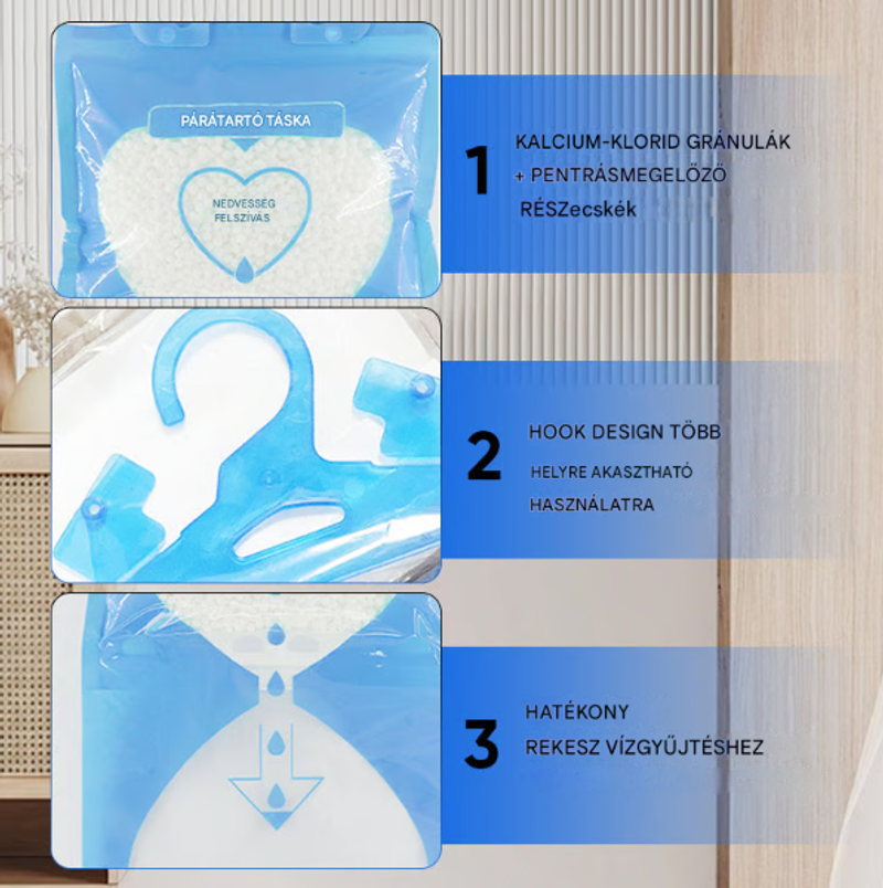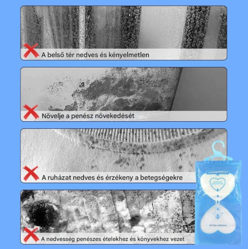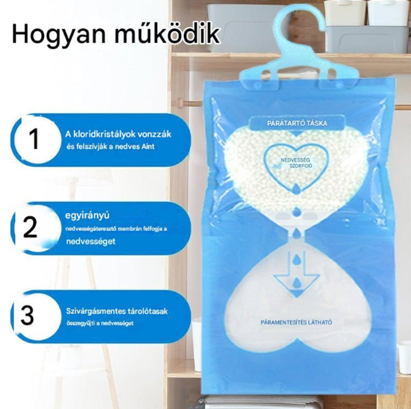 Nemrég vásároltam ezt a nedvszívó zacskót, és azt tapasztaltam, hogy az otthoni páratartalom jelentősen javult használat után. Többé nem kell attól tartanod, hogy penészedik a gardróbban, igazán hasznos!