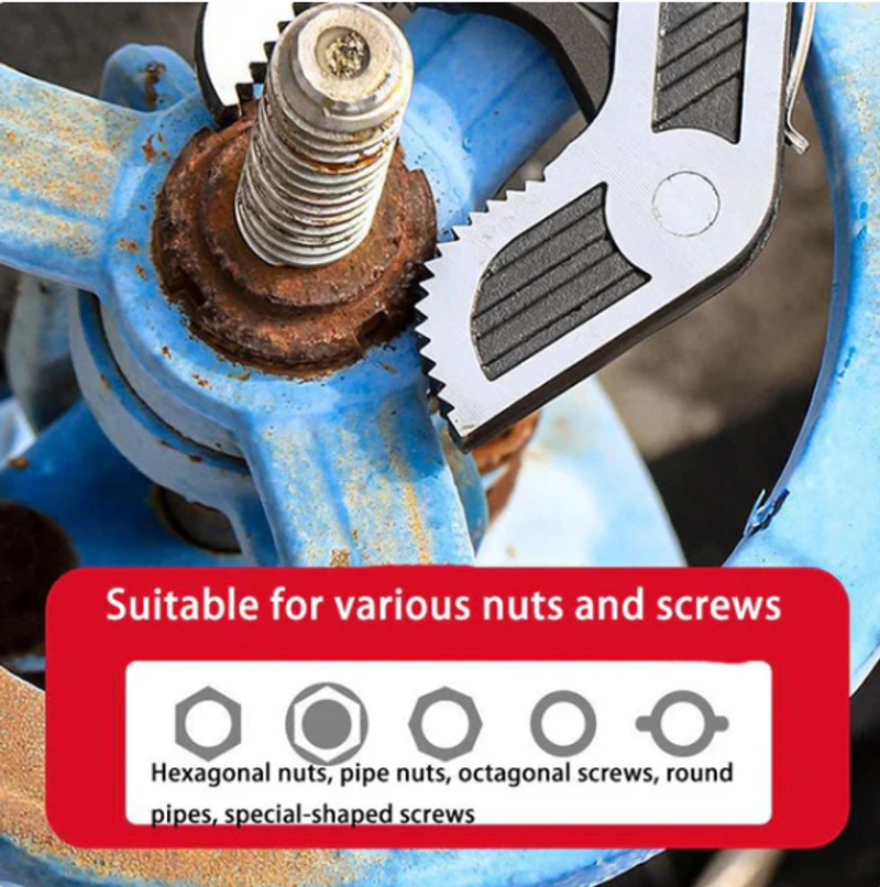 SUPERIOR GRIP: Forged jaws with double threads teeth can grab the pipe or nuts firmly, anti-slip and quick adjustments, easy to use, save your time and energy.