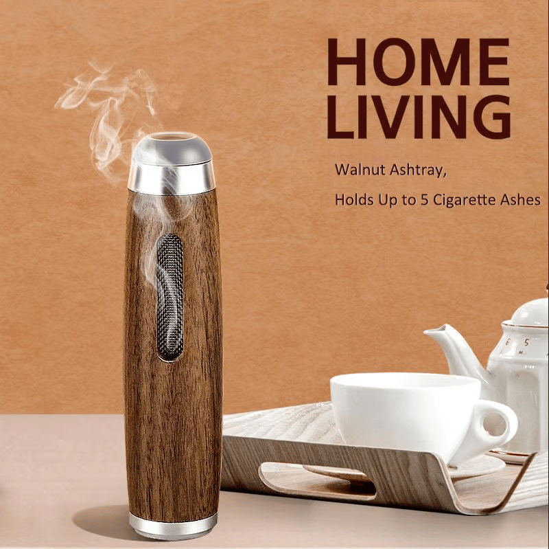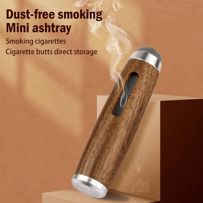 High-quality walnut wood material, simple and elegant, durable, does not drop ash when smoking, cigarette butts are stored directly, mini portable ashtray.