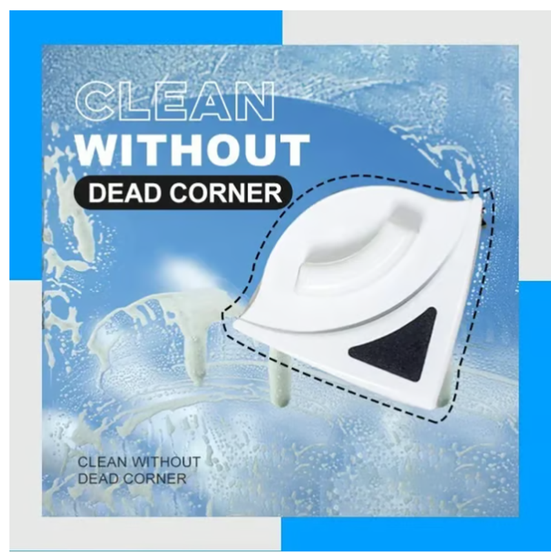 Triangular shaped magnetic glass cleaner, which can wipe to the narrow area of the window and clean without dead corners. The built-in water storage sponge can be used for a long time, avoiding repeated water replenishment and easy to use. And the cleaning cotton, cleaning wiper and fixed buckle can be replaced.