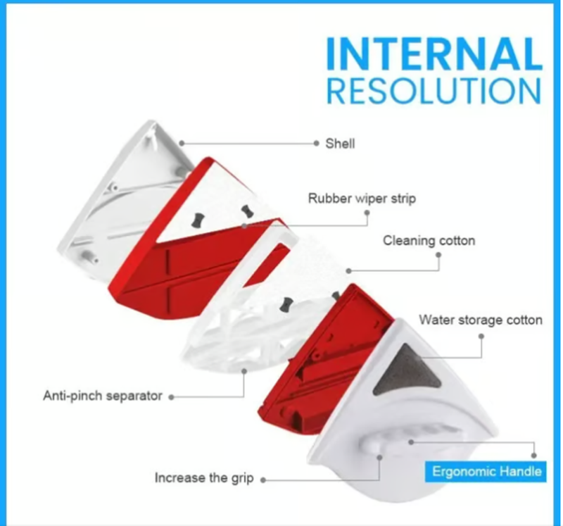Some glass wiper on the market is with very strong magnet that has no safe way to open and easy to hurt your hands. Ours is an upgraded double-sided glass cleaner, which can be rotated open for easy and safe operation.