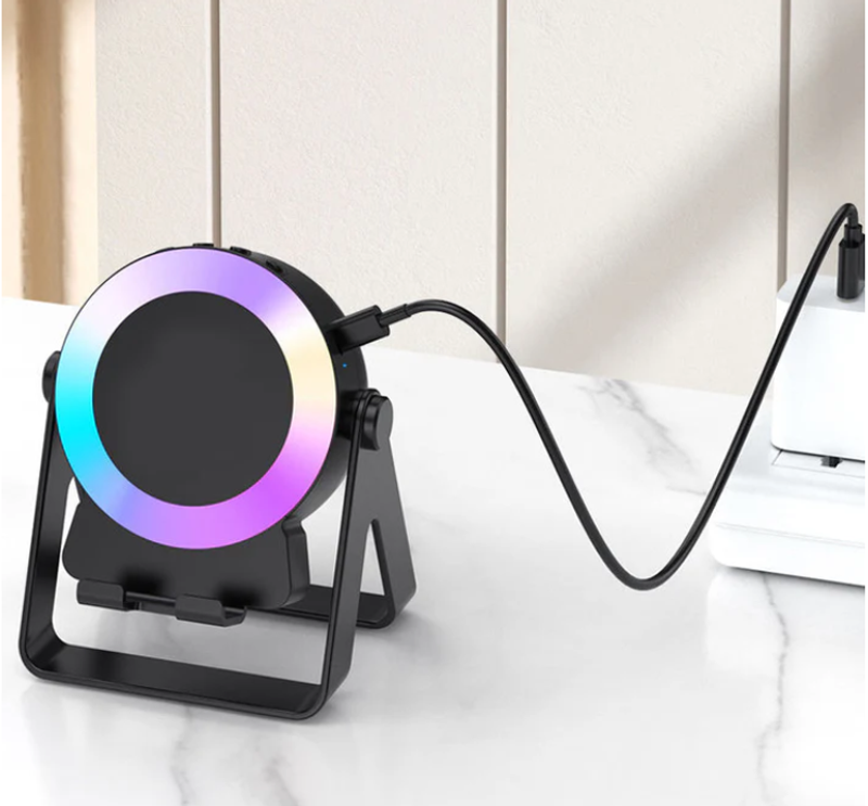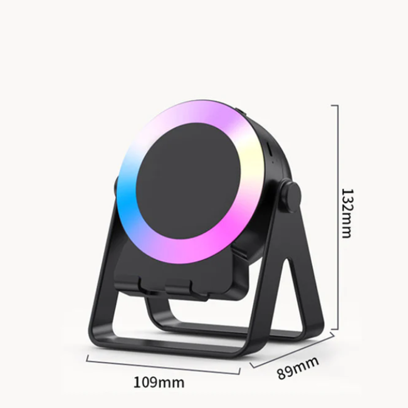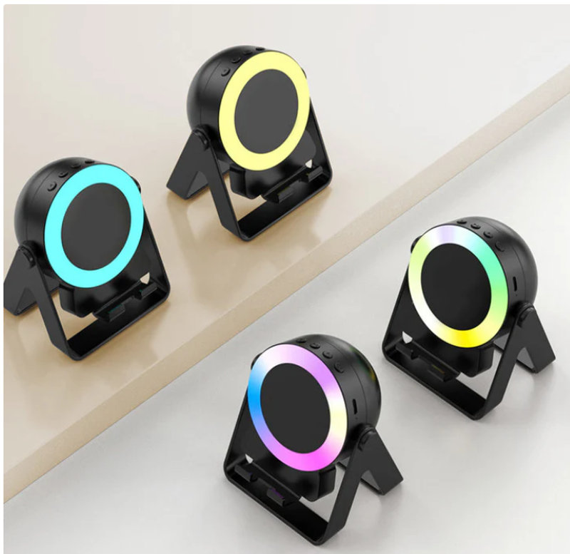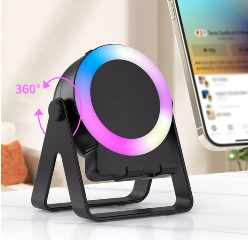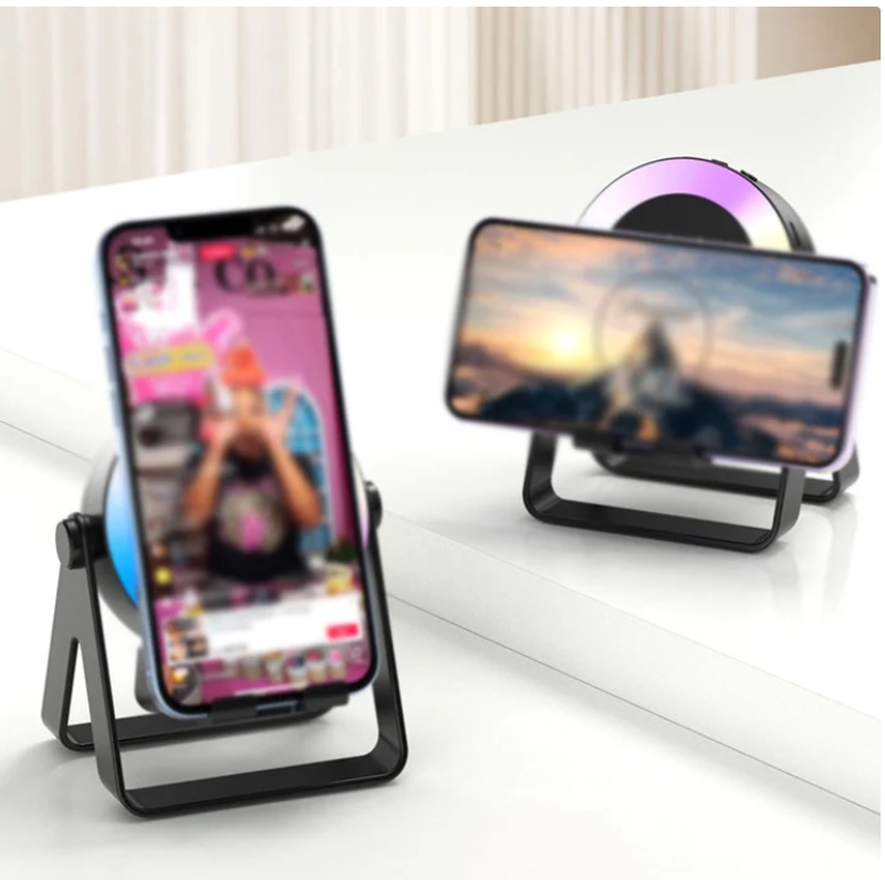 4-IN-1 MULTIFUNCTIONAL USE – It’s more than a speaker. This product functions as a wireless inductive speaker, phone holder, night light and stylish desktop decor. Ideal for work desks, nightstands, or travel, it replaces multiple accessories with one space-saving solution.