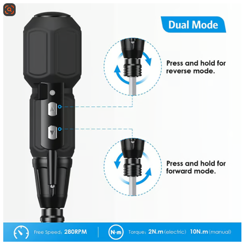 Der drahtlose Elektroschraubendreher bietet eine Geschwindigkeit von 280 U / min, die für schnelle und einfache Schraubantriebsaufgaben für Handwerks -DIY, Computerbaugruppe, aufgehängte Bilder, Baugruppen und Reparaturen von Möbeln geeignet sind.