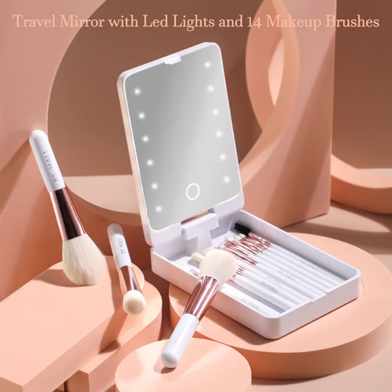 - 🌟Elevate your makeup application process with Travel Makeup Brush Set with LED Mirror - your ideal travel companion. Experience convenience and style like never before!