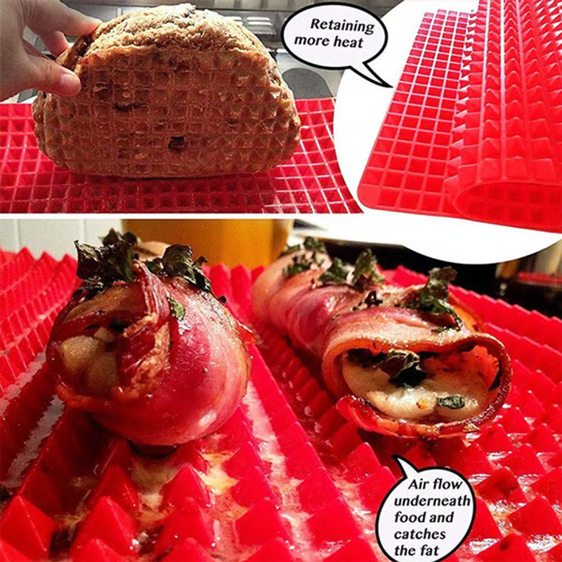 his innovative Silicone Cooking Mat is not only for smart and healthy cooking, it can also be used as a trivet, drying rack, and upside down for evenly cooked bread, cookies, and pastries. And once you have cooked with this mat, you will want everything in your kitchen to be as durable and easy to clean.
